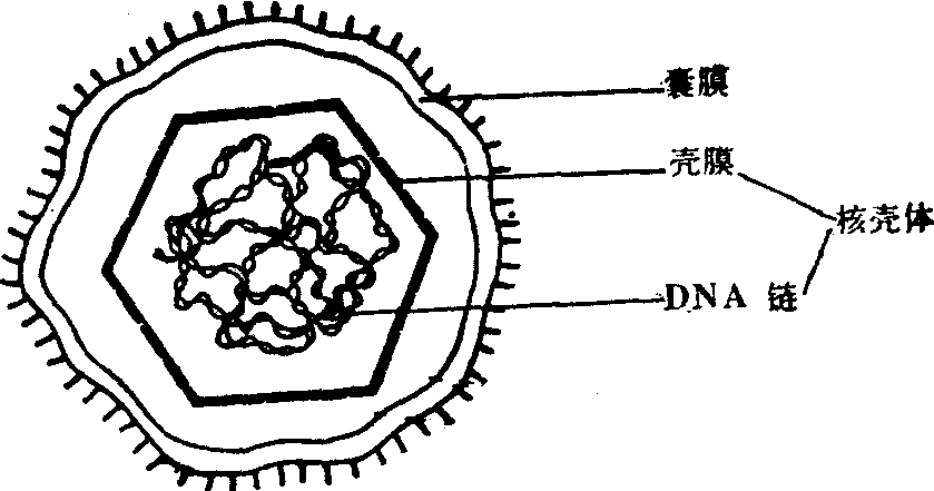 图1 立体对称型病毒(疱疹病毒)剖面示意图