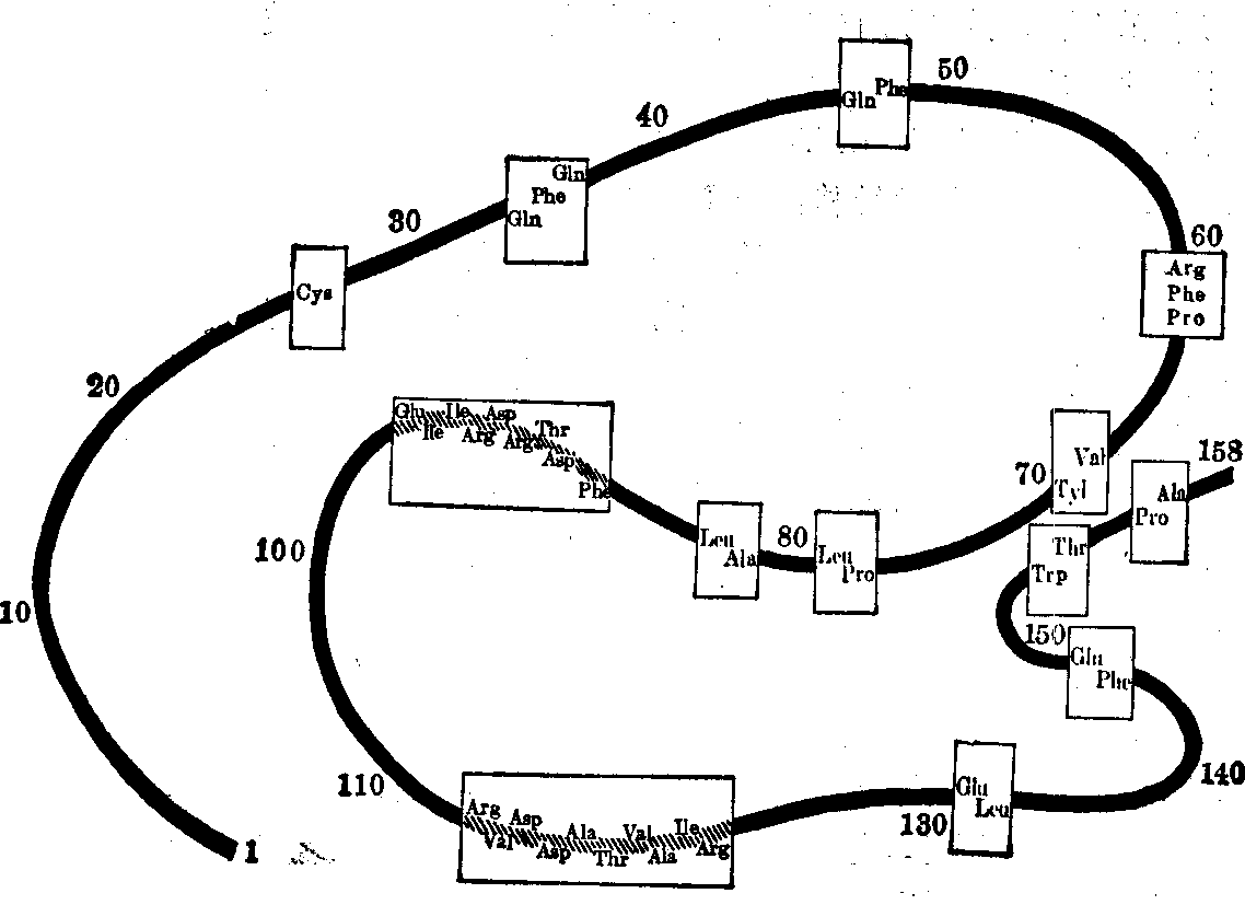 其中x为任何一种氨基酸。流感病毒包膜上的血凝素、神经氨酸酶都是由糖蛋白组成的。由于它们具有生物学活性,对它们的研究比较多。 血凝素(HA) 呈杆状(14×4nm),分子量为24×104道尔顿,每个血凝素由三个分子量约为7.5×104道尔顿的血凝素亚单位组成,每个HA亚单位则由一个较大的多肽(HA1,分子量为5.5×104道尔顿)通过二硫键与一个较小的多肽(HA2,分子量为2.5×104道尔顿)相结合。HA1和HA2都是糖基化的蛋白。有细胞凝集活性的部分位于HA1中,由HA2插入包膜的脂质中。每个流感病毒约有550个血凝素。血凝素能刺激机体产生抗体,该抗体具有抗病毒感染的作用和抑制红细胞凝集的作用。所以,可以认为血凝素除了能吸附、凝集红细胞外,在感染过程中能使病毒吸附于细胞受体上。
