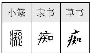 chī癡,形声,从疒,疑声,本义为呆傻,引申为极度迷恋(某人或某种事物)。俗字作“痴”,音符改为知。《异体字表》以“癡”为异体字。 |