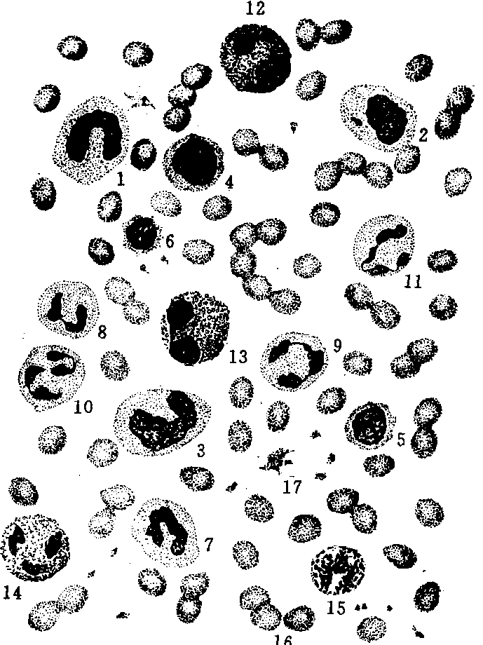 | 释义 | 白细胞及其分类 白细胞及其分类白细胞是无色有核的细胞,体积比红细胞大,每立方毫米血液中有4000—10000个。观察白细胞的形态和特点需用涂片复合染色的方法,在血涂片(见图1.4-2)上白细胞可分为两大类:一类细胞的胞质内含特殊颗粒,称为粒细胞,其中又因颗粒着色性质不同分为嗜中性、嗜酸和嗜碱粒细胞三种,它们都是在红骨髓中生成的;另一类细胞的细胞质不含特殊颗粒,包括淋巴细胞和单核细胞,前者在淋巴组织中生成,后者在红骨髓中生成。