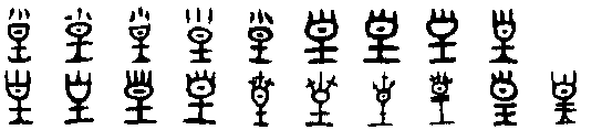 huánɡ表意,金文下从王(或省为土),上象君主头上戴的冠冕之形,表示皇权至高无上(一说上象火炬光焰上腾之形),小篆误把冠冕形写作自,隶定为“皇”,把自改为白。本义为大,引申为君主。 【辨析】 以“皇”作音符构成的形声字一般读huánɡ:凰、惶、蝗、煌、隍、徨、湟、遑、篁、鳇。皇 (huáng)大君也。从自、王。自者,始也。王者以三皇爲始。 【按】皇,古文作 、 、 、 ,象燃燒的火把。 白於藍以爲是“煌”的初文,輝煌明亮義。引申有大、天、君王等含義。 皇 ☚ "> 卬 ☛ 00000223 |