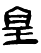皇 甲骨文; 金文; 篆huáng[冠(意符)+王(聲符)→皇(《説文》:“皇,大也。從自。自,始也。始皇者,三皇,大君也。自,讀若鼻,今俗以始生子爲鼻子。”皇,君主,亦指神話傳説中的神〈皇帝、皇后、皇權〉;堂皇,盛大〈皇皇巨著、皇皇之告〉。)] 《詩經·豳風·破斧》:“周公東征,四國是皇。”(周公出兵東征,匡救四個小國。) [西漢] 司馬遷 《史記·秦始皇本紀》:“古有天皇,有地皇,有泰皇,泰皇最貴。”(泰皇,傳説中的三皇之一。) 皇huáng(9画)
