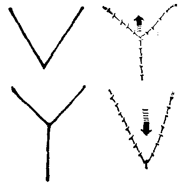 图12 连串Z成形术(1)相连接的连串Z成形术; (2)间隔的连串Z成形术。 Z成形术是整形外科所广泛应用的基本手术方法之一,最常用于松解条索状的直线瘢痕挛缩。其法,以瘢痕为中轴线,利用在其两侧正常皮肤所形成的三角形皮瓣易位缝合,挛缩即可获松解,且因缝合后呈Z形,还可以避免挛缩复发,Z成形术还常用于矫正蹼状挛缩 (图13),以蹼的游离缘为中轴线,将蹼劈分为均等的两面,在两面形成一对或几对方向相反的三角形皮瓣,互易位置后相嵌缝合成Z形或锯齿形,蹼即消失,挛缩亦随之松解。臂与轴间的夹角以70°为宜。蹼较薄弱或为有瘢痕的组织,经劈分切开形成皮瓣后可能因血运不足出现坏死,宜慎用。矫正蹼状挛缩,还有四瓣Z成形术(图14),不仅各瓣的移转较为灵活,顺中轴线的延长长度也较大。Z成形术还常用于松解环形狭窄,其原理与矫正蹼状挛缩相同(见“先天性手缩窄环”、“先天性足畸形”)。此外,还常用于错位组织的复位(图15)。以及改正某些部位创口的直线缝合,俾预防因直线瘢痕发生挛缩出现畸形,如唇裂的修复手术设计即须本此原则。