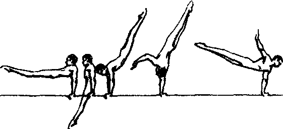 ☚ 屈腿绕杠下 支撑前摆转体90°侧腾越下 ☛ |