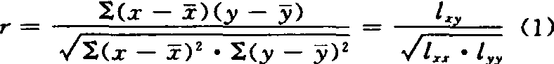 式(1) 分子部分称为协方差,分母根号内分别为因素x、y的平方和,相应的协方差与平方和简作lxy、lx 、lyy。相关系数是无单位的纯数。取值范围自-1至1。当相关系数为正值、负值及零时分别称为正相关、负相关及无相关。相关系数的显著性检验 样本相关系数r为从总体相关系数为ρ的总体中抽取的随机样本。若ρ=0,r将出现在0周围呈对称分布。显著性检验可取无效假设H0:ρ=0,相应的备择假设为HA:ρ≠0,作自由度为N-2的检验。已将信度α=0.05及α=0.01的显著水平下的临界ra值列成表格备查。如r≥ra,则在α显著水平下接受HA:ρ≠0,否则接受H0:ρ=0。 当ρ≠0且样本容量N较小时,r的分布不对称。为了使r分布接近于正态分布,取反正切双曲函数变换,并称之为Z。
