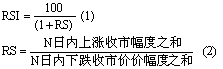 | 释义 | 相对强弱指标RSI根据股价涨跌幅度变动来分析一段时间内股市多空双方相对强弱趋势的指数。一般情况下,RSI在50以下为弱势市场,在50以上为强势市场。5日或10日RSI值在85以上或15以下时,可能会出现反转。RSI在高位区或低位区时会渐渐迟钝,失去其作用,故此对RSI研判应注意配合其他指标。 相对强弱指标Relative Strength Index(RSI)计算市场买卖力量强弱对比的指标。计算公式为: 相对强弱指标计算市场买卖力量强弱对比的指标。依此对大势及其走势作出研判。其计算公式为: