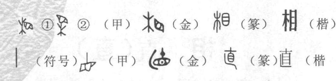 (甲) “相” 与 “直” 都是以 “目” 为形符组构的汉字。眼睛是人的感官之一,因此属于实践论认识论的范畴。“相”与 “直”在长期的流变过程中,人们赋予它以拟人化的意蕴。“相”偏于主观对客观的作用,而“直”则偏于对人品、人格、道德方面的祈愿。儒家尚直,古人崇直,现代人也在不断地履直,于是便将“直”植入许多具有美学意义的汉字之中。同时也重塑了中华民族特有的直、硬、挺的人性品格和悍然好斗,似勇而非的戆直性格。 汉字文化,从审美层面讲,与西方最大的区别在于文字的诗意。如果说西方拼音符号是纯表音的话,那么中国汉字就应该是一个善于抒情的文学,并由此造就了中国文化的诗情特色。而这一诗情特色早在文字之初就已臻禅定。 “相”与“直”,都是造字者在“目”上所做的文章。它的造出,表明古人重视看问题的方法,提醒人们提高对事物观察的准确度。