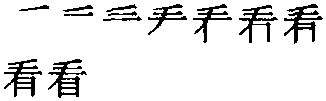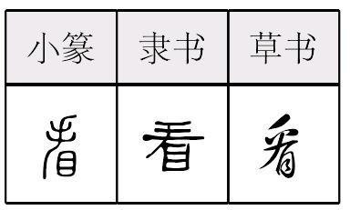 表意,小篆从手从目,表示把手搭在眼睛上部遮挡阳光,往远处望,隶定为“看”。本义读kàn,远望,引申为用眼睛直视人或物、观察判断、对待、诊治、照料、探望、拜访等;又读kān,引申为照管、监管。 【辨析】 看/视/见/睹 见86页“睹”。看 (kàn)从手,下目。亦作“𥉏”。 【按】看,《説文》:“睎也。”即以目視物。“𥉏”爲“看”的古文字形。一音kān,監視守護義。 看 *看k’an[甲骨] [金文] [小篆] 《說文》: , 睎也。 从手下目。 ,看或从倝。 (四篇上) 手遮刺眼之光線以便利觀看。 ☚ 段 扁 ☛ 看〈动〉(1)看守;守护。 《金》十三: 一个冯妈妈~门首,是奴从小儿养娘,心腹人。 《醒》四九: 姜小姐又不会~孩子,每日都是姜朝媳妇帮贴,又甚不方便。 《聊·翻》一: 留下乜两个孩子,我~着并无差迟。 (2) 看管;监督。 《醒》二九: 一日,棉花地里带的青豆将熟,叫狄周~了人拣那熟的先剪了来家。 另见kàn。