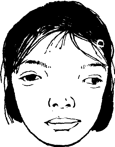 图1 眶距增宽症 诊断可以两侧眶内壁间距离(IOD)的测量为准。正常成年人IOD为23~28mm。Tessier以此为据,将眶距增宽分为三度: 第Ⅰ度,30~34mm; 第Ⅱ度,35~39mm;第Ⅲ度,40mm及以上。因眶内壁的形态不尽相同,为了准确诊断和选择适当手术方式的需要,尚须行颅底X线断层摄影观测。在确诊眶距增宽症时,还应与假性眶距增宽症鉴别。如由于面型较宽,而显得两眉内侧端间隔较远; 或由于内眦赘皮、睑裂狭小等原因所致的内眦距增宽症,都可因视错觉造成貌似两眼间距离较远的印象,但实际并无眶间距离的超常。这可称为假性眶距增宽症。虽然真性眶距增宽症通常都有内眦距的增宽,但内眦距增宽不一定都确有眶距的增宽,检查中须注意分辨。 眶距增宽症可行颅面整形术治疗。手术包括一系列截骨和植骨术,截除位于两眶间的适当大小的骨块,并使两侧眶骨部分或完全游离后,互向中线推移固定,使眶距缩小。于所出现的骨缝隙内行植骨术充填。由于眶距增宽的形成,主要为眶轴的向外偏斜,两侧视神经孔仍处在近于正常的位置,故此种手术设计不致影响视神经。手术有经颅外和经颅内矫正两种方式。 经颅外矫正又有两种方法: ❶眶内壁截骨术。经鼻中线切口,截除中央骨块后,将眶内壁连同内眦韧带向内侧推移。重新固定于适当位置。内移后所出现的骨缺损裂缝,用取自髂骨或肋骨的自体骨移植嵌入修复。此法除极轻度畸形外,一般难获有效矫正(图2)。 ❷颅下眶骨截骨术。在额鼻部筛板下方,截除位于中央两侧的骨块各一块; 如鼻根部畸形严重,则完全截除而不保留中间骨块。劈裂眶外侧壁,并在眶底行截骨术,将所形成的呈U形的两侧眶底骨块,各向中线推移固定。因此而出现的骨缺损裂缝,以移植骨嵌入。本法适用于筛板位置较高(高于额鼻缝),无额部畸形如脑膨出,且程度较轻的Ⅰ、Ⅱ度病例 (图3)。