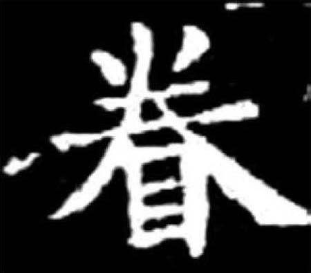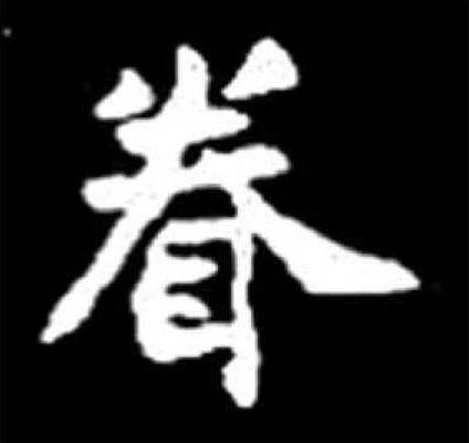 ❹ 如花美眷|三亲六眷 眷 金文; 篆juàn[目(意符)+龹(聲符)→眷(《説文》:“眷,顧也。從目,龹聲。《詩》曰:‘乃眷西顧。’”顧念,愛戀〈眷念、眷戀、眷顧〉。)] 《詩經·大雅·皇矣》:“乃眷西顧。”(於是回頭朝西看。) 魏滋伯《西湖月老祠楹聯》:“願天下有情人,都成眷屬。” 眷*睠; juàn(11画)