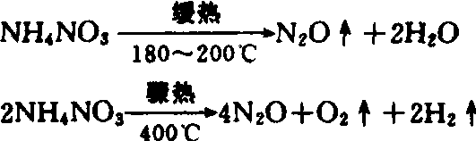 多次的吸收反应是在多个吸收塔内进行的。 硝酸铵的生产分为两步:❶氨和稀硝酸连续发生中和反应(HNO3+NH3→NH4NO3+热量),直至溶液达到中性反应后,再经真空蒸发浓缩,使硝铵浓度提高到97%~98%; ❷浓缩液依次经过离心、造粒、干燥等工艺,即为成品。 理化性质 农用硝铵为白色或浅黄色结晶或颗粒。纯品含氮量为35%,一般为33%~34%,铵态氮和硝态氮各约占1/2;每立方米肥料重量约0.82~0.84吨,一吨肥料约占1.19~1.22立方米体积。它极易溶于水,20℃时,100千克水可溶解188千克硝铵,温度升高,溶解度随之增加;水溶液一般呈中性反应。溶解时伴有明显的吸热反应。溶于等量水时,其溶液温度从15℃下降到零下18℃。硝铵吸湿的临界温度20℃时为66.9%,在一般条件就容易吸湿结块,高温高湿,则会严重吸湿,甚至潮解成糊状;当空气转干燥,又因失水而结块。对此,可采取以下相应的养护措施:❶制成颗粒,以减少吸湿面积; ❷在颗粒表面添加少量如矿物油、石蜡、磷灰土粉等疏水物质; ❸制成硫硝酸铵和硝酸铵钙; ❹为防其结块,包装前先使成品的水分含量尽量低,温度降至15℃以下。硝铵有助燃性和爆炸性,它受热会分解: