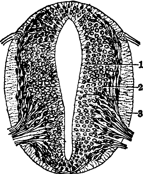 图2 神经管横切,示组织分层 1.室管膜层 2.套层 3.边缘层
