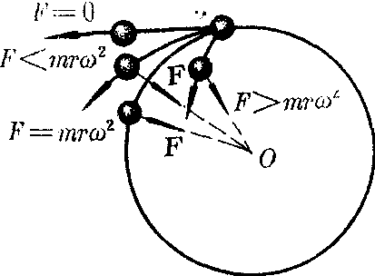 作圆周运动的物体由于所需的向心力不足而逐渐远离圆心的运动。如图1所示,当质量是m的物体以角速度ω沿半径为r的圆周运动时,需要的向心力F=mrω2,离心运动是指向心力突然消失即F=0时,物体沿圆周的切线飞出;或向心力不足即F2时,物体在曲率半径较大的 一小段圆弧上运动,离原来的圆心越来越远。