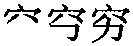 qiónɡ窮,形声,从穴,躬声,本义为时间或空间达到终点,完结,引申为阻塞不通、不得志、不显贵、寻根究源、副词(彻底、极端、胡乱地)等。元代俗字、《手头字》、《简体字表》、《简化字表》简作“穷”,据草书楷化。 【辨析】 穷/贫 见312页“贫”。 |