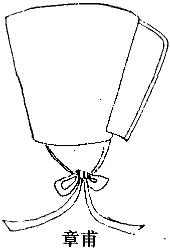 章甫 (《三才圖會》) 章甫一种礼帽。《论语·先进》:“宗庙之事,如会同,端~,愿为小相焉。”(会:指诸侯盟会。同:指诸侯共同朝见天子。端:一种礼服。相:主持赞礼和司仪的人。) 帽子 帽子帽(~带;~缘;棉~;布~;呢~;军~) 冠(桂~;华~;皮~) 元服 另见:帽饰 穿戴 ☚ 帽、巾 各种人的帽子 ☛ 章甫zhāngfǔ也作“章父”。商代的礼冠,黑布制成,前方后圆,较高深。后泛指冠帽。汉刘熙《释名·释衣服》:“章甫,殷冠名也;甫,丈夫也。服之所以表章丈夫也。”《论语·先进》:“宗庙之事,如会同,端章甫,愿为小相焉。”《庄子·逍遥游》:“宋人资章甫而适诸越,越人断发文身,无所用之。”唐成玄英疏:“章甫,冠名也。故孔子生于鲁,衣缝掖;长于宋,冠章甫。而宋实微子之裔,越乃太伯之苗,二国贸迁往来,乃以章甫为货。且章甫本充首饰,必须云鬟承冠,越人断发文身,资货便成无用。”《礼记·儒行》:“丘少居鲁,衣逢掖之衣;长居宋,冠章甫之冠。”清孙希旦集解:“章甫,殷玄冠之名,宋人冠之,所谓修其礼物也。孔子既长,居宋而冠。冠礼,始冠缁布冠,既冠而冠章甫,因其俗也。”《仪礼·士冠礼》:“委貌,周道也;章甫,殷道也;毋追,夏后氏之道也。”汉郑玄注:“章,明也。殷质,言以表明丈夫也……三冠皆所服以行道也,其制之异同未闻。”唐孔颖达疏:“云其制之异同未之闻者,委貌、玄冠于《礼图》有制,但章甫、毋追相与异同未闻也。”《汉书·贾谊传》:“章父荐屦,渐不可久兮。”唐颜师古注:“章父,殷冠名也……父读曰甫。”汉卫宏《汉官旧仪·补遗》:“孝文皇帝时,博士七十余人,朝元端、章甫冠。”三国魏嵇康《与山巨源绝交书》:“唯达者为能通之,此足下度内耳,不可自见好章甫,强越人以文冕也。”《隋书·列传第四十七》:“王戴金花冠,形如章甫,衣朝霞布,珠玑璎珞,足蹑革履,时复锦袍。”宋梅尧臣《杨畋赴官荆州》诗:“吴钩皆尚壮,章甫几为儒。”