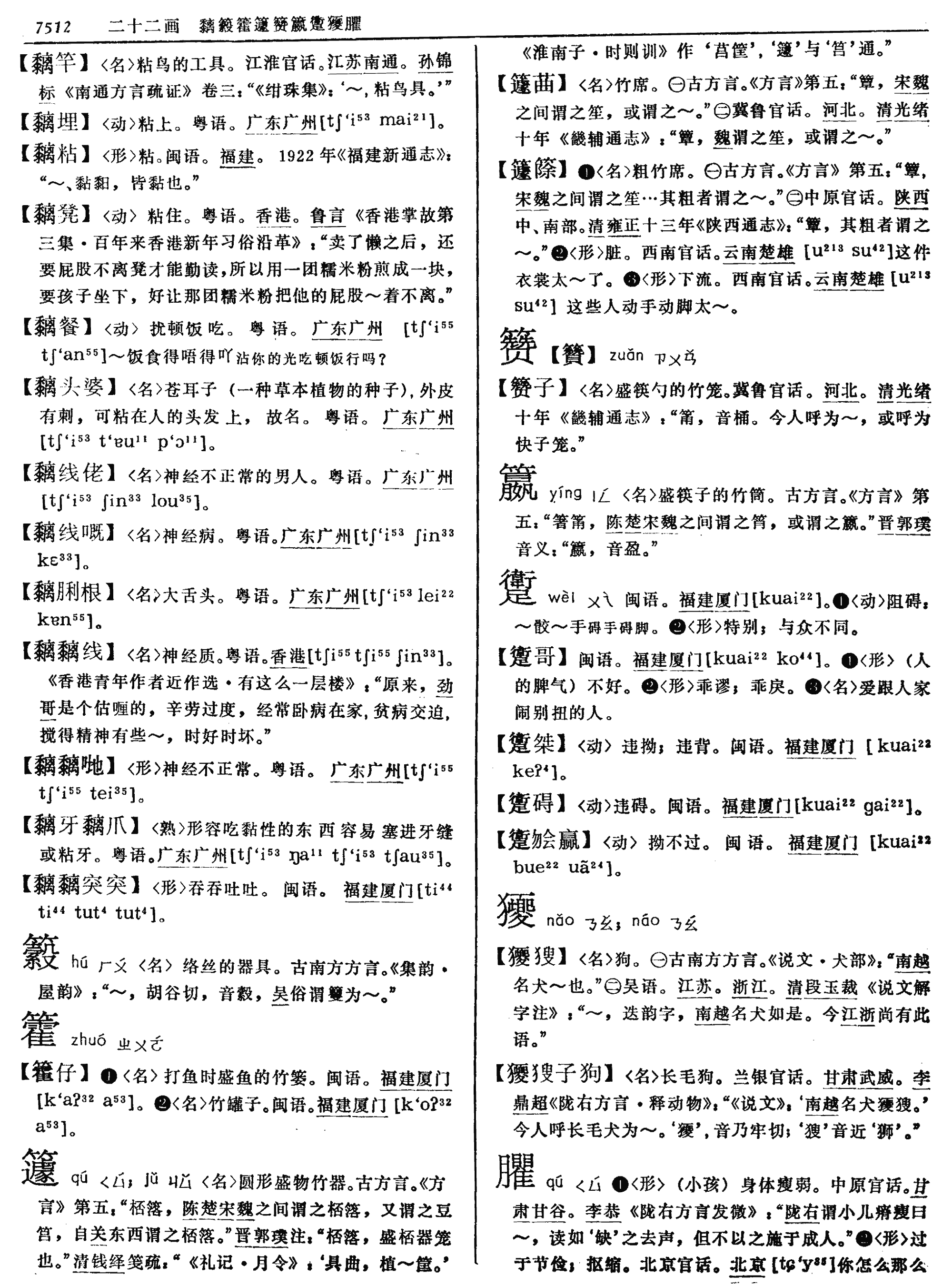 | 释义 | 籝读音·ing(ˊ),为ing韵目,属ing—eng韵部。以成切,平,清韵。 上一条: 㜲 下一条: "> ![]() ![]() 古代名物 > 日用類 > 用物部 > 諸雜 > 籯 > 籝 籝 yíng 同“籯”。 籝yingBB59 竹盛器 竹盛器篚 篝 篿(~扁;~箕) 箩(箩兜;箩筐;~头;箩篼) 篰 笿 簝 箔 匾 笲(执~) 籝 笾 箕(~畚;簸~) 笊篱算器 另见:盛具 竹木片 ☚ 筒具 盛食具 ☛ 籝yínɡ [书] ❶ (箱笼一类的器具) bamboo box or chest |