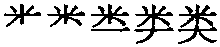 【提示】米,中间是竖,不是竖钩。下面是大,不是犬。米和大末笔原本都是捺,上下两个捺笔紧邻,为避重捺,米末笔捺改点。 *类(類)lèi9画 米部 (1) 许多相同或相似事物的综合: ~别|种~|分~|同~|属于一~。 (2) 像;相似: ~似|~人猿|画虎不成反~狗。 类類lèi古代作頪,从頁,从米。读lèi。事物相似义。后作類。形声字。从犬,从頪,亦声。《说文》说:“种类相似,惟犬为甚。”指种,好多相似事物的综合。如:分类|类型|类推。组词如:种类。近代省“页”旁。现以为规范字。见《总表》。转为动词,类似,好像。如:画虎类犬。 类類★繁◎常★常◎异