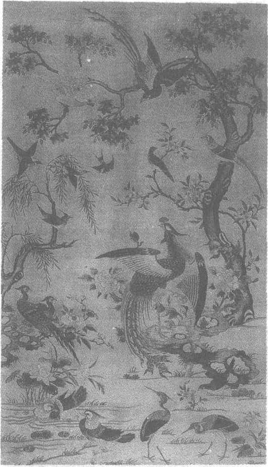 | 释义 | 粤绣百鸟朝凤纹缎 粤绣百鸟朝凤纹缎清。长125厘米,宽70厘米。北京中央工艺美术学院藏。粤绣又称广绣,是清代著名的地方名绣之一,与苏、京、湘绣合称四大名绣。据明末清初屈大均《广东新语》鸟服条载:“广绣以孔雀毛绩为线缕,以绣补子及云章袖口,金翠夺目。广绣铺针于毫芒,又以马尾缠绒作勒线,勾勒花纹轮廊,自然工整,针步均匀,针法多变,纹理分明。”此缎是以白色为底的经八枚真丝软缎,运用了插针、铺针、钉针、撕针、鳞针、渗针、钉金、勒针、扭针、直针、圆子针、散套与乱针等20几种针法,精心地表现了物象的质感,将物象的形态淋漓尽致地体现出来。图中一凤居中,昂首回望,立于怪寿石之上,凤的头、颈、背、翅、尾为青碧色,凤冠为粉红色,颈部和翅的局部飞羽,凤脚、凤腿为金黄色,凤眼、尾羽上点缀以白色,使凤鲜明艳丽。凤左是一棵结籽的梧桐树,树干、树叶为绿色,以蓝绿勾勒树干边,以淡黄勾叶边,果实为金黄缀黑实籽;树枝延伸横展至图的上部。凤右有一棵矮柳树,树旁傍立一怪寿石,一条潺潺流动的溪流,横卧于图的下部,河中有盛开着荷花,绚丽多姿。在凤鸟的前后左右,梧桐树、寿石、柳树、水溪中有姿态各异的鹦鹉、黄鹂、锦鸡、喜鹊、白鹭、鸳鸯等16只珍禽,或引吭鸣啭、或舞羽翩飞、或顾盼多姿,遥相呼应。整个画幅清丽艳秀,绚丽多姿。