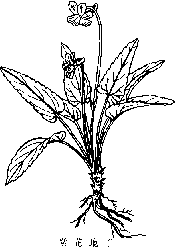| 释义 | 古代名物 > 花卉類 > 草部 > 多年生 > 紫花地丁 紫花地丁 zǐhuādìdīng 亦稱“箭頭草”,“獨行虎”、“羊角子”、“米布袋”。堇菜科。多年生草本,葉基生,有長柄,卵狀披針形。春夏開花,淡紫色,花瓣五片,側瓣有毛,下方一片擴大,基部有管狀距。蒴果橢圓形。地被植物,亦供藥用。產於我國各地。明·李時珍《本草綱目·草五·紫花地丁》:“〔釋名〕箭頭草、獨行虎、羊角子、米布袋。” 紫花地丁【同义】总目录 紫花地丁独行虎 独行虎/鬼钗/无声虎/房苑/梨盖/支兰/牙子/狼子/绿叶绿花草/绿花绿叶/媚草/甘泽/白泽/鬼丑/拒冬/行唐/横唐/马豆/鹿葱/憨葱/乌头/乌喙/僧鞋菊/千秋/昌明童子/独白草/奚毒/鸳鸯菊/白幕/鬼蒟蒻/鬼头/鬼芋/蒻头/水玉/地文/守田/和姑/痰宫劈历/七叶一枝花/重台/九臼/马目毒公/鬼药/独荷草/独脚莲/乌扇/鬼扇/黄远/黄杜鹃/黄踯蠋/败华/鱼毒/鱼尾草/闹鱼花/红桂/茵蓣/猴蒜/观音莲/烂肠草/黄藤/断肠草/火焰草/赤网/迎阳子/兔缕/野狐丝/王女/蒙/玄及/栽秧藨/木莓/悬钩/蚕莓/蛇藨/番木鳖/土青木香/独行根/盍合子/黑丑 ☚ 戴星 独行虎 ☛ 紫花地丁herba violae清热解毒药。出《本经逢原》。见《活兽慈舟》。又名地丁、地丁草、紫地丁、辽堇菜。为堇菜科植物紫花地丁Viola yedoen-sis Mak.的干燥或新鲜全草(图)。除去杂质,洗净,切碎,晒干。主产江苏、浙江、安徽等地。苦,寒。入心、肝经。功能清热解毒,利湿消肿。《活兽慈舟》:“泻火,溃坚,消肿。”主治:❶喉风,配大蓟、黄丹、蒲公英等(《抱犊集》)同用。