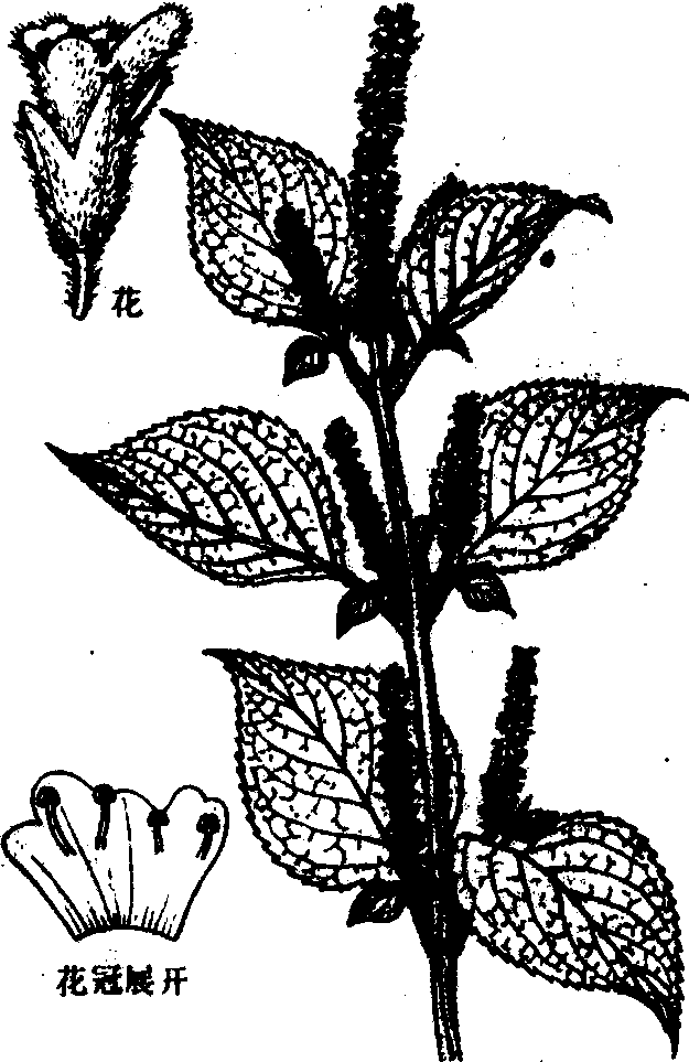 紫 苏 紫苏acute common perillaPerilla frutescens (L.)Br.var.arguta Hand.-Mazz.,唇形科,紫苏属。白苏的变种。中国各地常有栽培,亦逸生于山野或路边等处。本种形状与白苏极为相似,但主要区别在于叶和花均为紫红色或淡红色。茎、叶含有芳香油,可提取作为香料、防腐剂或干性油等。用种子繁殖,清明前后播种育苗,苗高13~17 cm时移栽,亦可直播。秋季花序将抽出时收割全株。茎叶及果均可入药,有散寒解表、健胃、祛痰和利尿的功效。嫩叶生食,作汤菜用。