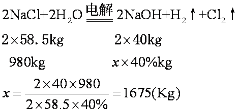 例2 含杂质2%的食盐1000kg,经精制后进行电解,理论上可制得40%的氢氧化钠溶液多少公斤?