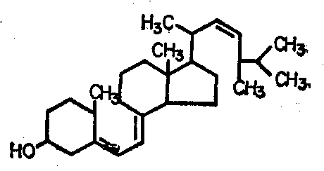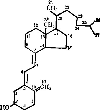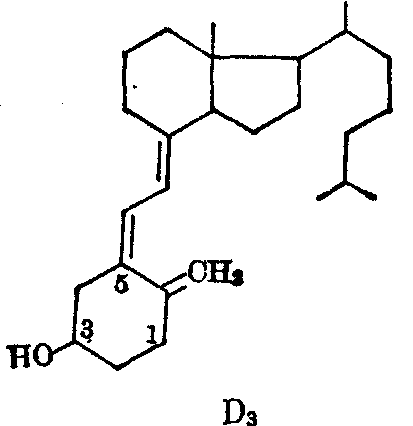 ☚ 维生素A和胡萝卜素 维生素K ☛ 维生素D 维生素D天然维生素D虽有多种,但最常见的两种为D2和D3。麦角固醇经紫外线照射即成D2,它是醇母和霉菌的产物。7脱氢胆固醇经同样照射即成D3。两者的结构和性质均颇相似。但D2对大鼠与人类有效而对小鸡的效力甚微。维生素D3则对小鸡疗效高。维生素D系D2与其它类固醇混合物的名称,现已不用。 维生素D2 ![]() 维生素D3 ![]() 1,25-二羟胆钙化醇 维生素D3(胆钙化醇)运输至肝先转化成为25羟钙化醇,是由一种要求有NADH和分子氧的线粒体酶系催化的。反应的产物对反应又有强烈抑制作用。这种反馈抑制既可以节约维生素D3又可防止产物过多发生中毒现象,具有重大的生理意义。25羟胆钙化醇又在肾中转化成1.25二羟胆钙化醇。线菌素D能阻断这一步,表明25羟胆钙化醇诱发了这一转化所必需的因子的生成。这一因子显然是一种蛋白质(酶)。 1,25二羟胆钙化醇使肠壁细胞中某种蛋白质转变成Ca-B-P(钙结合蛋白),增进钙的运转。牛的Ca-B-P(分子量10,000),每一个分子与一个Ca++结合,其Ka=2.6×105mol-1,Ca-B-P与ATP在肠壁细胞内起运转Ca++作用时还必需Na+存在。在摄取后4或24h作比较,1,25-二羟胆钙化醇无论是对肠中钙的吸收或骨中钙的动员的效应比维生素D3或25羟胆钙化醇要高几倍到十几倍。25羟胆钙化醇又比维生素D3强几倍。 肾病影响维生素D3的1羟化,肝病则影响25羟化,因而可引起抗D的佝偻病。此病可以用1羟或1,25二羟胆钙化醇治疗。 可见维生素D的作用与维生素B混合体不同,它不是辅酶成分,而是很象类固醇激素能影响酶或其他蛋白质类因子的生成。 缺乏维生素D时表现出骨形成的缺陷。在儿童为佝偻病,在成年(常在妇女)为骨软化症。患者骨生成的最后阶段矿质沉积失常,而骨母质生成却继续进行。儿童因骨胳未臻完善故出现弓形腿、膝外翻、串珠、鸡胸等畸形,称佝偻病。本世纪40年代美国某大医院700死婴中作组织学检查时,有50%有佝偻病迹象。 维生素D既促进Ca2+在肠道中吸收,又促进Ca2+从骨胳里动员。它的作用并非局限于肠,骨胳等少数器官而是带普遍性的。它在许多组织里对二价阳离子的移动都有调节作用。用带有放射性核素的维生素D作分布实验,证明肝、心、骨胳肌、小肠粘膜细胞、增殖的软骨细胞、长骨骺盘的膜上都有维生素D存在,也证实D作用的普遍性。在肝、肾、小肠细胞匀浆中维生素D出现于微粒体部分。 食物中以鱼肝(油)、蛋黄、乳类酵母中含量较多。其余食物中较少。儿童多晒太阳可在皮下自制维生素D3。乳类中添加经紫外线照射过的麦角固醇是保证儿童健康的一个好办法。 维生素D过多易引起骨胳脱钙、骨折; 血磷、血钙高度增加,导致软组织钙化与肾结石。 ☚ 维生素A 维生素E ☛ 维生素D 维生素D维生素D(vitaminD)为甾醇的衍生物,是一些具有使正常骨胳生长和维持作用的具有类似结构的化合物的总称。目前已知至少有十种以上具有维生素D活性的甾醇物质,而其中只有两种较为重要,称为前维生素D。一个是存在于植物油或酵母中麦角固醇经日光或紫外线照射生成维生素D2,又称钙化醇或麦角钙化醇(ergocalciferol)。另一个是存在皮肤中的7-去氢甾醇,经光照转变成维生素D2,又称胆钙化醇(cholecalciferol)。D2和D3的结构十分相似,均是前体甾醇的B环开环衍生物,两者差异在于维生素D2的侧链上多一个双键和一个甲基。