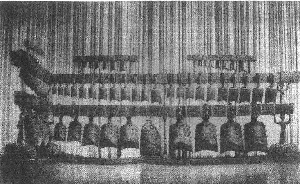☚ 4.打击乐器 编磬 ☛ 编钟中国古击乐器。由挂在木架上一系列铜制的钟组成,用小木槌击奏。历代形制及枚数不尽一致。 编钟 编钟古代打击乐器。商代以来的钟为铜制。多是由大中小三枚组合起来成为依一定系列组成的旋律乐器。商代编钟的甬(钟柄)中空而与内腔相通,钟体饰有简单的兽面纹,有的著有器主名号。演奏方法:手拿着敲击(执鸣)或把钟安放在座上敲击(植鸣);有穿孔或旋(环)的悬挂起来敲击(悬鸣)。一套编钟可构成完整的五声音阶、六声音阶或七声音阶,有的甚至十二个半音具备。编钟不仅作为乐器使用,也是宫廷或庙堂的音乐或乐舞。同时也是统治者名分、等级和权力的象征,常与鼎并提,称为“重器”。 ☚ 中国钹 中国民族乐队 ☛ 编钟bian zhong【音乐】chimes 编钟stone chimes 编钟carillon 编钟古代一种成套的打击乐器,用铜按乐律各音制成大小不等的钟,依音序排列悬于木架上,演奏时依乐谱敲击而成乐章。 |