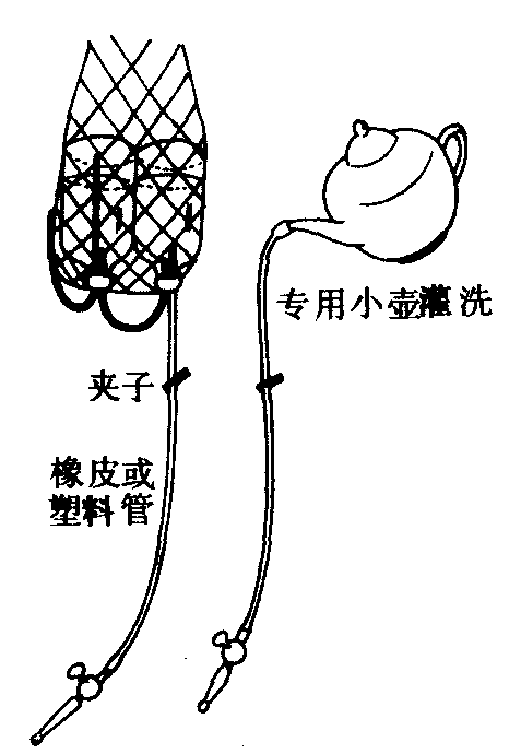 老年性阴道炎是由于老年妇女内分泌衰退而导致的阴道炎症。老年妇女由于卵巢功能衰退,阴道后壁萎缩变薄,上皮细胞糖原减少,不能在阴道杆菌的作用下变成乳酸,使阴道成为酸性环境抑制细菌的繁殖以致自然防御消失,抵抗力下降,容易遭受细菌侵入而发病,症状是阴道有灼热感。瘙痒、疼痛、下坠,并伴有水性或血性阴道分泌物。护理:除服用少量雄激素增加阴道抵抗力外,可用0.5%醋酸或1%乳酸作阴道灌洗,用煮过的吊桶接连经消毒处理(煮、蒸)后的塑料或橡胶管及阴道冲洗头(管长约1米),在近吊桶端的管道上置一夹,桶内放入500~1000毫升上述药液,将吊桶挂在距床70厘米高处,使病人平卧床上臀下放便盆或坐在马桶上,打开夹子用少许药液冲洗外阴及湿润冲洗头,然后将冲洗头插入阴道缓缓冲洗,冲洗完毕夹紧夹子取出阴道冲洗头擦干外阴部。将全部用具清洁消毒后备用。灌洗10次为一个疗程。也可用瓶装,或以壶代桶易于开展此项治疗(图2—2—68)。此外会阴瘙痒每晚可用温水泡花椒水洗泡,平时注意保持外阴部的清洁干燥,常更换内裤。