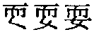 耍 金文;《説文》所無shuǎ[而(古文意爲“鬍鬚”,意符)+女(意符)→耍(女子裝上鬍鬚,會意爲演戲〈玩耍、雜耍、耍槍〉。引申爲施展〈耍脾氣、耍花腔、耍手腕〉。孟小冬演鬚生,是“耍”字的最好詮釋。)] [宋] 無名氏《九張機·其三》:“中心有朵耍花兒,嬌紅嫩緑春明媚。”(耍:有趣,可愛。) 耍shuǎ(9画)