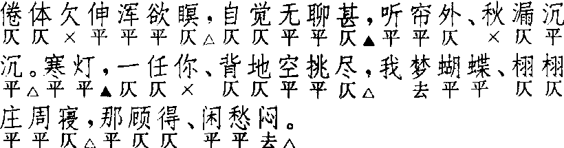 | 释义 | 耍孩儿 耍孩儿曲牌名。参见“常用曲谱”类。 ☚ 锁南枝 寄生草 ☛ 耍孩儿 耍孩儿戏曲剧种。又称“咳咳腔”。历史甚为古老。据考证,可能是由金元时期的[般涉调·耍孩儿]演变而成。在山西北部大同一带流行。脚色分红、黑、生、旦、丑五行,在表演上舞蹈性很强。传统唱法使用后嗓子,近于佛教音乐的发声。以呼胡为主要伴奏乐器。在艺术上和山西北部各种道情戏颇多共同之处。 ☚ 上党梆子 河北梆子 ☛ 耍孩儿 耍孩儿❶民间曲调名。五十四字,平仄通协。字数定格与南北曲《耍孩儿》不同。明人所编《玉谷调簧》中收有二十余首。 ☚ 锁南枝 寄生草 ☛ 耍孩儿 耍孩儿戏曲剧种。又名咳咳腔。一说为金元北曲〔耍孩儿〕发展形成,流行于山西大同及雁北地区。基本唱腔为平曲子,以八句唱词为一段,音调哀怨委婉。表演动作舞蹈性强。剧目有《千里送京娘》、《花园会》、《狮子洞》、《金木鱼》等。 ☚ 赛戏 越调 ☛ 耍孩儿 耍孩儿王实甫 《西厢记》 ![]() 全曲九句:7△,6△。7▲,6△。7▲,7△。3△,4,4△。第二句宜叶上声韵。第七句散套有不叶韵者,此系沿袭诸宫调作法之故。第五、六句对。第八、九句对。散套首牌,〔哨遍〕套次牌。剧套联入套中,可独用入套。一名〔魔合罗〕,只出现在剧套中。有幺篇,同前篇,散套用之。亦入〔正宫〕、〔中吕〕。《北词广正谱》谓借入〔双调〕,原注“缺”。出于诸宫调,全同。与南曲异。 ☚ 哨遍 煞 ☛ 耍孩儿 耍孩儿许自昌 《水浒记》 ![]() 全曲七句:7△,5▲,7△。2▲,8△,8△,6△。《南词简谱》谓:第二句“可以叶韵,惟普通格式概不叶也”。第四句二字句,一般也不叶韵。时有误题〔红衫儿〕,如《拜月亭·皇华悲遇》、《邯郸记·召还》。与诸宫调、北〔般涉调·耍孩儿〕均不同。 ☚ 红芍药 会河阳 ☛ 耍孩儿 耍孩儿民间曲调名。一般七句四十一字。平仄通叶。明人景居士选辑《时兴滚调歌令玉谷新簧》卷一,载有二十馀首《时兴各处讥妓耍孩儿歌》,一式皆是七、七、七、七、三、三、七的句格,与南北曲之〔耍孩儿〕字数句格都不同。沈德符在《野获编·时尚小令》里说:“自兹(按指成化、弘治年间)以后,又有〔耍孩儿〕、〔驻云飞〕、〔醉太平〕诸曲,然不如三曲(按指〔锁南枝〕、〔傍妆台〕、〔山坡羊〕)之盛。”道出了当时〔耍孩儿〕流行的实际状况。 ☚ 锁南枝 寄生草 ☛ 耍孩儿(一) 戏曲曲牌名,元王实甫《西厢记》第二折[耍孩儿]:“当初那巫山远隔如天样,听说罢又在巫山那厢。……怪黄莺儿作对,怨粉蝶儿成双。” (二) 清代民间小曲,今山东、山西某些地方戏里尚有这一曲调。 耍孩儿 耍孩儿曲牌名。南北曲均有同名曲牌。南曲属中吕宫、般涉调。北曲属般涉调,较常用。字数定格及韵式据清·周祥钰《九宫大成谱》,作七、七、七、六、七、七、三、四、四、(九句)。亦入北曲正宫、中吕宫、双调。或用作小令,或用于般涉调,正宫或中吕宫套曲内。如昆剧《邯郸记·三醉》吕岩下场时所唱。京剧里有同名伴奏乐曲,也叫〔娃娃〕。以海笛演奏,多用为节奏缓慢的武打场面的伴奏。民间亦有同名曲调。五十四字,平仄通协。明人选辑《玉谷调簧》中收有二十余首。今山东、山西等戏里还保留着这一曲调。 ☚ 红衲袄 满庭芳 ☛ |
