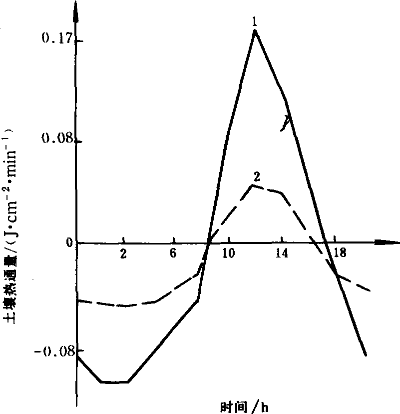 图 1 垄作和平作温度差的日变化 镇压的小气候效应 镇压地土表紧实, 增大了地面对太阳辐射的反射率, 减小了地面白天的短波辐射收入, 故有明显的降温和提墒效应。夜间, 镇压地因土中热传导能力增强, 不断地将热贮量从深层向土表输送, 造成地表温度较高, 因而地表的有效辐射比未镇压地高; 即镇压地失热较多, 但全天的辐射差额实际上比未镇压地的要少。镇压措施的降温效应并不是由于辐射平衡的降低, 而是由于土壤热特性的改变,引起热交换的差异所致。镇压可使土壤的空隙度减少,毛细管作用加强, 上层土壤的容积热容量和导热率显著增大。因此, 白天地面增温时, 镇压地地表向深层传导的热量比未镇压地要多, 使下层增温较多, 但表层温度却比未镇压地低; 夜间地面降温时, 镇压地从深层向地表输送的热量也多于未镇压地, 使镇压地表层温度较高(图2)。可见, 镇压地的表层白天有降温效应, 在夜间有增温效应, 镇压有减小土温日变幅的作用。各种土壤在不同的天气条件下, 镇压的温度效应也有差别。一般疏松的土壤适于在回暖天气结束前进行镇压, 偏粘的土壤可在寒潮侵袭后一、两天内进行镇压。 镇压对土壤水分的效应依土表的湿润程度而有不同。在土表湿润的情况下, 镇压加强了土壤的毛细管作用, 表层水分增加, 特别是粘重土壤, 甚至会引起土壤板结, 出现渍害。在地表干燥的情况下, 由于镇压减少了表层土壤孔隙, 使毛细管作用加强, 表层水分增加, 可以有提墒的效果(表3)。根据观测资料表明, 镇压后,表层干土层的厚度一般可减少2~3厘米,土壤含水量可提高1.0%~3.0%,以10~40厘米土层中水分的增加最为显著。在华北地区,早春或春播前后,土壤水分经常处在田间持水量以下, 且表土出现干土层, 此时若采取疏松表土(如耙地)的措施, 不但不能抑制水分的散失, 反而会加剧土壤水分的汽态扩散,加速耕层的失水; 如进行镇压与压后耙地, 使土层紧实并有一个疏松的薄土层覆盖其上,土壤水分就可在毛细管作用下从深层输送到表层,这对涵蓄春季土壤水分,保证适时播种、出苗,有良好作用。此外,已干松的耕层,昼夜温差较大,通过镇压可使土壤导热性能提高,而增加土壤温度的稳定性,有利于作物的出苗和生长。