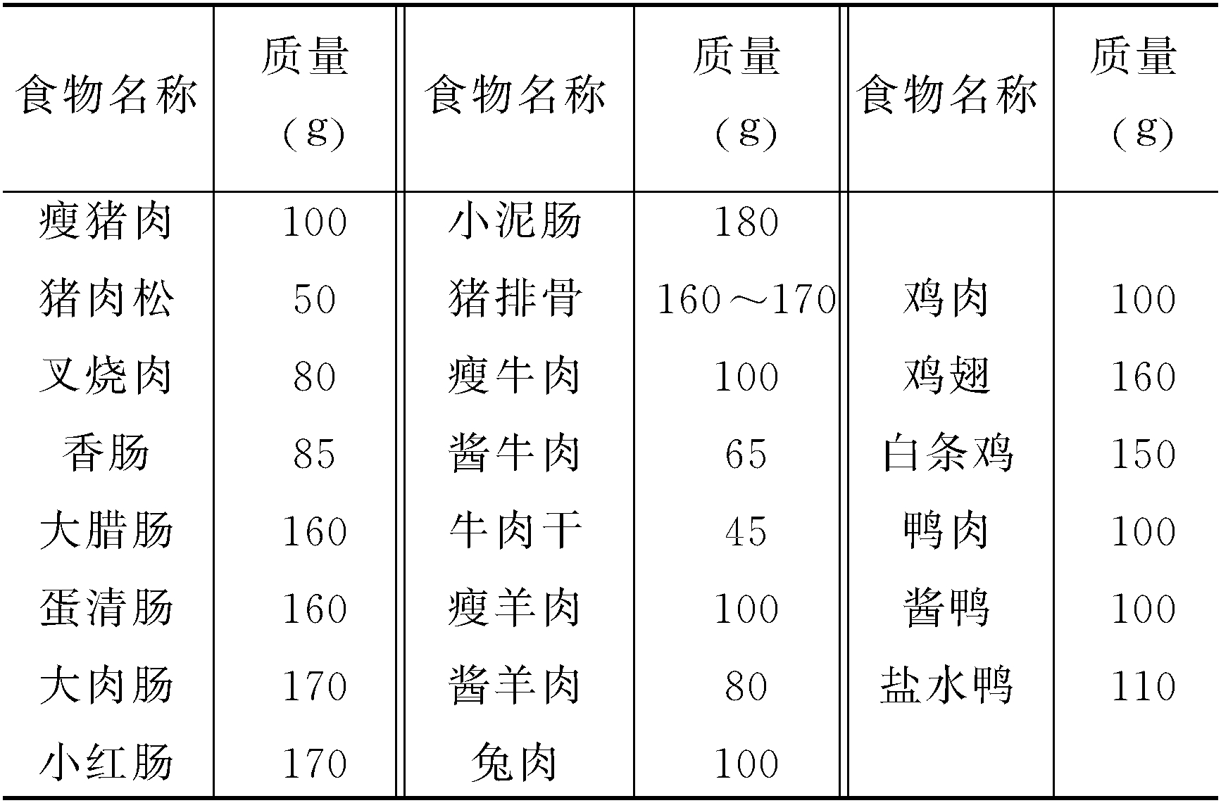 字词 肉类互换表(相当于100 g生肉的肉类食物)