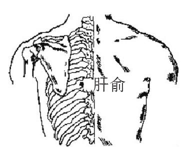 图80 肝俞Kanshu系足太阳膀胱经上的一个针灸穴位。取此穴时俯伏,于第九胸椎棘突下,旁开1.5寸处取之。施针时向椎体斜刺0.7~1.2寸。主治目眩、咯血、黄疸、胸肋痛、鼻衄、夜盲、脊背痛、癔病、精神分裂症等。 肝俞经穴名。属足太阳膀胱经,背俞穴。位于第九胸椎棘突下,旁开1.5寸分处。主治:黄疸,胁痛,吐衄血,目赤,目视不明,眩晕,夜盲,癫痫,脊背痛等。斜刺0.5—0.8寸;可灸。 肝俞ɡānshù经穴名。代号BLl8。出《灵枢·背腧》。属足太阳膀胱经。位于背部, 当第九胸椎棘突下旁开1. 5 寸处。主治黄疸、胸胁痛、吐血、胃脘痛、肝炎、胆囊炎、目昏眩、目赤痛、近视、青光眼、视神经炎、失眠、癫痫、精神病、功能性子宫出血、脊背痛等。微向脊柱斜刺0. 5 ~ 0. 8 寸。禁深刺。灸3 ~7 壮或5 ~15 分钟。