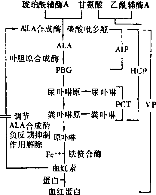 急性间歇性卟啉病(AIP) 为肝性卟啉病中最多见的一种,女性比男性多见。发病原理是肝内尿卟啉原-Ⅰ-合成酶活性减退,致血红素合成障碍,调节ALA合成酶的操纵基因发生突变,不能控制ALA合成酶的相应mRNA转录作用,因而有继发性ALA合成酶活性增加及血和尿中ALA与PBG含量增加。此外,血红素合成障碍时,对ALA合成酶的负反馈抑制作用被解除,亦促使ALA合成酶活性增加。卟啉物质的蓄积可使胃肠平滑肌强烈痉挛、四肢伸展性强直、神经组织脱髓鞘或轴突退变等。但AIP与其他肝卟啉病亦有不同,卟啉及其前体不沉着于皮肤组织,故无光敏感性与皮肤损害。 AIP症状复杂多样,易误诊为其他疾病。急性发作时有特异的三联征,包括急性腹痛、神经精神症状与棕红色尿。腹痛剧烈呈绞痛性,伴呕吐或便秘,但腹壁柔软且无固定压痛点,用解痉药无效;腹痛时常四肢麻木,上行性弛缓性瘫痪、癔病样表现,血压升高与心动过速等,严重时出现延髓麻痹。尿色棕红,ALA与PBG排出量超出正常的10倍至几百倍,肝细胞内PBG与ALA合成酶活性均增加,发作几天或几周后转入间歇期。也有些患者无临床症状,仅在生化检查时发现异常。本病尚无病因治疗,发作时可用吗啡或氯丙嗪控制腹痛与神经症状,高糖饮食或静脉注射葡萄糖(每月300~400g),可减少ALA合成酶的产生和卟啉物质的排出,神经损害严重者可用大剂量肾上腺皮质类固醇与细胞色素C、维生素E等,近年来有人提倡用静脉注射血红素,可减少ALA与PBG的产生与缩短发作时间,尤其适用急重型病例。预防发作至为重要,平日禁用上述药物及禁酒,发作与月经有关的妇女,可用避孕药。 延发性皮肤卟啉病(PCT) 发病学上PCT分遗传性与获得性。前者为原发尿卟啉原脱羧酶活性降低,致尿卟啉Ⅲ、尿卟啉Ⅰ与7-羧基尿卟啉蓄积,后者常继发于慢性肝脏病。与AIP不同,尿中ALA与PBG排泄量正常,肝内ALA合成酶活性亦不增加,但卟啉与铁含量增高,致产生继发性肝铁质沉着症或肝硬化。由于尿卟啉Ⅲ等沉积于皮肤,故具光敏性皮疹。本病男性比女性多见,常40岁以后发病,主要特点为暴露部位皮肤损害。初为红斑,继而水泡、糜烂致成溃疡,遗留色素或退色疤痕;此外,肝肿大常伴有糖尿病,但无腹痛与神经精神症状。治疗可用放血疗法,排出铁质可抑制ALA合成酶生成及提高尿卟啉原脱羧酶活性,也可用驱铁疗法 (如Desferal静脉滴注),其他治疗与AIP同。避免日光照射,局部涂擦油膏,以防护皮肤损害。 变异性卟啉病(VP) 又称混合型卟啉病,发病原理未明,尿中ALA、PBG、尿卟啉、粪卟啉与原卟啉排出均增加,同时粪中粪卟啉、原卟啉亦增加,临床表现可同时有皮肤损害及腹痛与神经症状,但亦不完全固定。治疗同AIP及PCT。 遗传性粪卟啉病(HCP) 本型少见,发病原理不明。除尿中ALA与PBG排出及肝内ALA合成酶活性增加外,特异的是尿中粪卟啉排泄量亦增加。其临床表现和治疗与VP相同。 ☚ 肝豆状核变性 肝糖原累积病 ☛ |