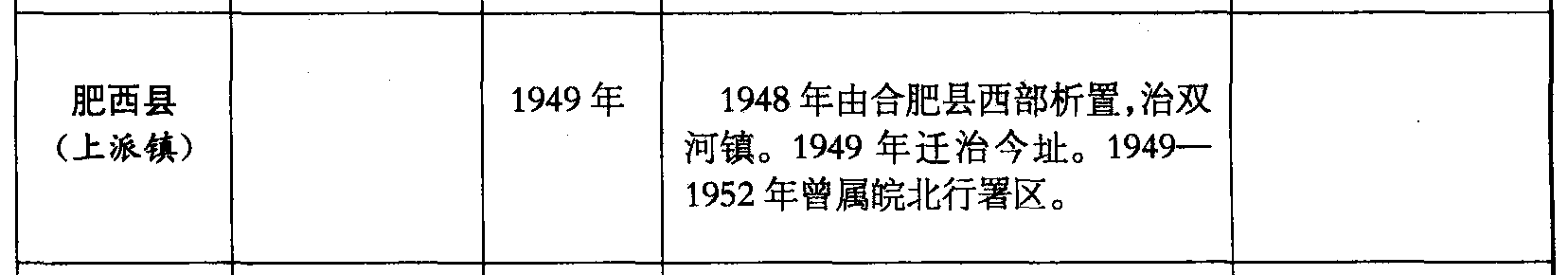 肥西县(上派镇)1949年1948年由合肥县西部析置,治双河镇。1949年迁治今址。1949—1952年曾属皖北行署区。