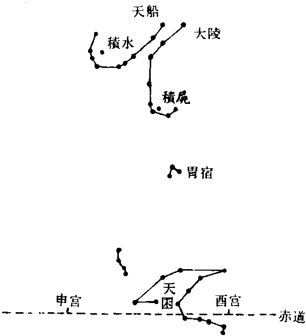 亦稱“胃”、“天倉”。星座名。西方白虎之第三宿。有星三顆,在白羊座,鼎足立於銀河下。其分野爲趙,屬冀州。《禮記·月令》:“[季春之月]日在胃。”《史記·天官書》:“胃爲天倉。”張守節正義:“胃主倉廪,五穀之府也。”唐·楊炯《渾天賦》:“胃爲天倉,婁爲衆聚。”《宋史·天文志四》:“按漢永元銅儀,胃宿十五度;景祐測驗,十四度。”亦爲天區名。按《步天歌》,除主體星座胃宿外,尚有天廪、天囷、大陵、天船、積屍、積水,凡。原星三十九顆增星六十一顆。