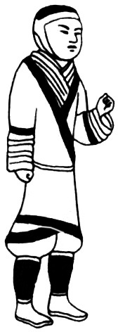 胫衣(陕西咸阳汉墓出土陶俑) 胫衣 胫衣古代士兵护腿的一种。用两片革状物,左右各一,分衣两胫,套于膝以下。另,无裆的套裤亦称“胫衣”。 ☚ 行滕 曲领 ☛ 00002618 |