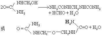 降低脲醛树脂胶及其制品中甲醛释放量由于脲醛树脂是高分子物质的初期缩合物,所以除具有各种分子构造的缩合物之外,尚含有部分游离甲醛。另外在树脂进一步固化过程中还放出甲醛。因此,脲醛树脂无论在人造板的板坯热压时或产品进行加工、使用时都会散发出刺鼻的甲醛臭味,污染环境,限制了产品用途,因此需要减少甲醛的释放量。常用的方法有:❶在制造树脂时,尿素与甲醛采用低摩尔比,并进行减压脱水。 ❷加入游离甲醛结合剂,如尿素、三聚氰胺、间苯二酚等。 ❸在配胶时,加入增量剂,如蛋白系增量剂,可与游离甲醛结合成为不可逆的、不溶性物质。 ❹对产品进行后处理。如用氨气处理板材;对产品表面进行涂饰或封闭处理等。 脲醛树脂改性 脲醛树脂在反应过程中生成各种缩合度的分子,而这些分子即使是在适当的pH和温度条件下的最终固化物,仍含有一定量的游离羟甲基,羟甲基具有亲水性和遇热进一步缩聚而分离出甲醛和水的可能性。这就是脲醛树脂胶耐沸水性能差和胶层易老化的原因。为了改进这些缺点,通常是在脲醛树脂中加入适量的三聚氰胺树脂(或三聚氰胺粉末)、苯酚、间苯二酚、血粉等物进行改性(表3),使其耐沸水性、耐老化性能有显著提高(如图)。