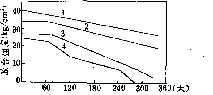 室外曝露时间与胶合强度变化曲线图 表3 改性剂加入量与胶合性能的关系