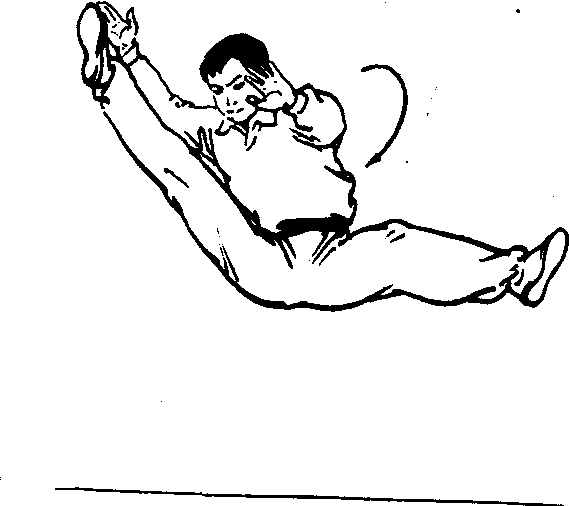 腾空摆莲 ☚ 腾空挂面腿 腾空转身蹬腿 ☛ 腾空摆莲outward leg swing in flight |