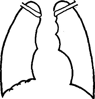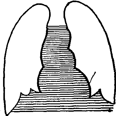 图3 膈幕状变形 病理情况下,无论是膈本身病变或者膈上、膈下病变,均可引起膈位置、功能和形态的改变。膈本身病变如:膈膨出症:表现为一侧性膈位置升高,多见于左侧,膈运动消失或呈矛盾运动,即吸气时健侧膈向下,患侧膈向上;呼气时健侧向上,患侧向下。左膈膨出可推挤心脏向右侧移位,并引起慢性胃扭转,在左膈下出现两个胃液平。膈疝:腹部脏器经先天膈裂孔或外伤性膈破裂突入胸腔,病侧膈抬高,胸腔内可见腹内脏器阴影,并推挤心脏向对侧移位,确诊一般需要钡剂检查。膈肿瘤或囊肿:均为罕见疾患,表现为膈局部隆凸,呈圆形或椭圆形,边缘光滑,膈运动一般无改变,通过气腹检查大多可明确诊断。 胸内病变引起一侧性膈升高者如: 一侧肺不发生或不发育;胸廓或脊柱发育异常;下叶肺萎陷; 近肺基底的肺梗塞;膈肌麻痹,因手术、炎症或肿瘤等原因损伤一侧膈神经,可使该侧膈升高,运动消失,或呈矛盾运动。 腹内病变引起一侧性膈升高者如:膈下脓肿,除表现患侧膈升高、运动受限或消失外,常合并患侧胸膜反应或盘状肺不张,部分病例可在膈下出现脓腔气体影象或液平。肝脓肿,膈改变不如膈下脓肿显著。肝脾肿大。急腹症,急性胆囊炎、阑尾炎、肾周围脓肿均可使患侧膈升高,急性胰腺炎可累及左膈,有时可波及两侧膈。 ☚ 纵隔肿瘤与囊肿 X线记波和电记波摄影 ☛ |