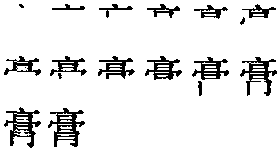 *膏gào14画 高部 (1) 在车轴或机械上加润滑油: ~车|~油。 (2) 毛笔上墨后在砚台上掭(tiàn)匀: ~笔|~墨。 另见gāo(122页)。 膏 ☚ 腸 膺 ☛ 膏gāo甲骨文的会意兼形声字。从月(肉),从高,高亦声。象用肉祭于宗庙。祭肉必肥,故有肥或肥肉义。《说文》小篆以后只是形声字,仍是肥或肥肉义。如:膏粱。组词如:膏腴(yú)。指土地肥沃。引申为脂,油。再引申指很稠的、糊状的东西。如:梨膏|牙膏|膏药。转为动词,指把油加在车轴或机械上。读去声gào。如:膏油|膏车。 膏★常◎常
