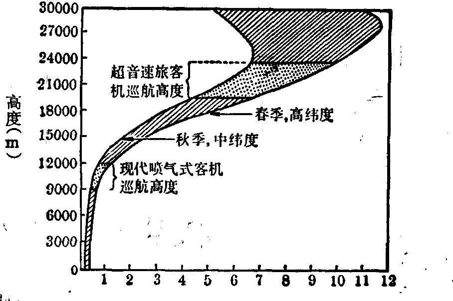 臭氧浓度 (ppm) 形成臭氧浓度特殊垂直分布的原因如下: 在高层大气中,气体非常稀薄,短波紫外线很强烈,氧分子几乎全部被解离成氧原子,因氧原子与氧分子发生碰撞的机会极少,故难以生成臭氧;即使形成少量,也为短波紫外线所立即分解。在平流层的中层,由于紫外线仍较强烈,臭氧。的生成与破坏反应均进行得很快,故该处的臭氧浓度并不高。到平流层的下层,由于短波紫外线已被衰减,臭氧生成与破坏反应也相应减慢,而在紫外线已减弱的情况下,臭氧必须达到一定浓度始能发生解离反应,故该处臭氧浓度得以升高,形成“臭氧层”。在低层大气中,由于短波紫外线已进一步减弱,被解离的氧分子更少,因而臭氧生成的速度已很缓慢。 臭氧层的意义 当太阳电磁波辐射通过大气层时,对生命有危害的短波紫外线 (λ<3000Å), 由于发生臭氧生成与破坏反应而被滤除,故臭氧层有保护地面生物机体免受紫外线危害的作用。此屏障作用的减弱和破坏,不仅直接危及生物的生存,还可引起地面气温和降水量的变化,从而间接对生物圈发生重大影响。臭氧被解离时以热能形式释出能量,此热量可使周围空气得到加温,成为平流层(圈)的暖层的“热源”,对平流层范围的气温垂直分布以及大气物理等均有重要影响。 臭氧对机体的影响 臭氧是强氧化剂,化学性质活泼。臭氧毒性很强,未进入血液之前,多已分解成氧,故一般认为不致引起全身毒性反应。其主要毒理作用是对肺组织的直接刺激。臭氧接触呼吸道粘膜、肺泡等组织表面上的液体时,可能先产生寿命很短的自由基,由后者再引起组织损伤。对臭氧的敏感性可因生物种属、年龄(幼小动物较敏感)及环境温度等而有较大变异,故直接引用动物实验资料应慎重。呼吸道感染和体力活动可降低对臭氧的耐力。在决定臭氧毒性效应的诸暴露因素中,峰值浓度往往具有更重要的意义; 仅时间加权平均浓度尚不足以表明其暴露的严重性。一般实验动物暴露3小时的LD50值,多介于20~50ppm之间。将大白鼠暴露于6ppm浓度下18小时,可引起肺水肿症状。所有死亡动物的肺部都有严重出血及肺水肿。如机体多次受到较低浓度臭氧的影响,小支气管及肺泡管可发生纤维性变。 引起人嗅觉的臭氧阈限为0.01ppm。臭氧浓度为0.1~0.47ppm时,即可对人鼻咽部产生刺激症状;0.94~9.4ppm时,则可出现咳嗽、胸痛、呕吐、头痛和极度疲劳等症状;约10ppm可使人发生肺水肿。有的受试者,在1.5~2.0ppm浓度中暴露2小时后,感到胸骨后疼痛、思考能力减弱和口干,并伴有咳嗽等症状。臭氧可使肺活量明显减少,如有一组受试者在安静状态暴露于0.75ppm浓度下2小时,肺活量可降低10%。以上症状显然是由于臭氧对细支气管粘膜及肺泡壁等的直接刺激作用所引起。此外,臭氧还对视觉及嗅觉有一定影响。 暴露容许浓度 工业上规定作业环境每日暴露8小时的臭氧最大容许浓度为0.1ppm。一般认为,飞行条件下座舱内臭氧浓度达到0.2ppm (海平面条件)是允许的。Lategola等(1980)提出,在1800m高度引起可逆性肺活量降低等反应的臭氧阈浓度为0.2~0.3ppm。美国联邦航空局最近规定,在5500m及以上高度飞行时,飞机座舱内臭氧的最大容许浓度应为0.25ppm。 臭氧的防护 维持飞机增压座舱通风的气体,来源于高空大气,在空气通过压缩机与金属接触并受到高温作用后,其中臭氧虽大部被破坏,但仍可能有小部分进入座舱。臭氧在高温作用下可被分解: 当加热到300℃时,50%的臭氧被破坏,400℃时,完全分解。 在18000m高度飞行时,座舱内臭氧很少会超过0.1~0.2ppm。目前防护臭氧的措施: 除通过座舱增压系统压缩机的加温作用将其破坏以及避开臭氧浓度高的地区航线飞行外,正研制更有效的过滤系统以防止臭氧进入座舱。 臭氧对橡胶制品的腐蚀 橡胶对臭氧很敏感,臭氧浓度达到0.0094~0.0141ppm时,就能使橡胶变质出现裂纹,故飞机上所有的橡胶制品皆需定期检查,必要时进行更换或采用抗臭氧的橡胶制品。 ☚ 航空毒理学 温度环境 ☛ 臭氧ozone |