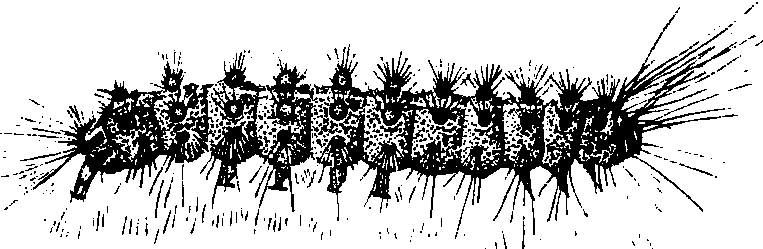 图2 舞毒蛾幼虫 开始在柞树上、落叶中或石块下化蛹,以7月上、中旬化蛹为多。6月底开始羽化,7月中下旬为羽化盛期。成虫有趋光性,羽化当天能交尾。卵产在树上、墙壁、石块等物体的背光处。一头雌蛾一般产一个卵块,少数产2个卵块,卵块上覆黄褐色绒毛。每个卵块有300~1250个卵粒。分布为害 舞毒蛾分布于中国黑龙江、吉林、辽宁、内蒙古、山东、山西、陕西、河南、河北、湖北、湖南、四川、贵州等省区。以中国北方柞蚕区受害较重。舞毒蛾幼虫大量摄食柞树叶片、嫩芽、嫩梢。1974~1976年辽宁省南部和东南部舞毒蛾大发生,有126万亩柞蚕场受到严重为害而不能养蚕,部分柞蚕场柞叶被舞毒蛾幼虫吃光,使柞蚕生产遭受不同程度的损失。有的柞蚕场因树叶严重受害,柞蚕饥饿大量死亡,由于剩下蚕数过少而被迫停放;有的柞蚕场虽然尚剩蚕数较多,但是收集的春蚕茧,皮薄质差、重量轻,不能作秋蚕用种。 天敌 国内外记载有200余种。在中国东北已经搜集到扑食性天敌13种,寄生性天敌26种。在辽宁省柞蚕区舞毒蛾的主要天敌有粗状六索线虫、舞毒蛾核型多角体病毒及质型病毒、舞毒蛾黑瘤姬蜂,四星埋葬虫、古毒蛾追寄蝇、毒蛾蜉寄蝇、皮蠹、梳胫饰腹寄蝇、柞蚕饰腹寄蝇、麻雀、杜鹃、大山雀等。 防治 卵期刮除卵块。成虫期用黑光灯诱杀,能消灭大量抱卵雌蛾。幼虫3龄前喷洒舞毒蛾核型多角体病毒悬浮液,将病毒虫尸加水稀释成3×66~3×107个多角体/毫升。或于幼虫2~4龄期喷洒50%辛硫磷乳油1,000倍液,80%敌敌畏乳油700倍液。或喷洒2%辛硫磷粉或2%辛敌混合粉,杀虫效果均很好。但在幼虫生长5、6龄期时进行防治,必须提高用药浓度,并且由于柞叶已经受虫为害损失较大,药剂防治必须过了残毒期才能放养柞蚕。 舞毒蛾gypsy mothLymantriadispar L. ,鳞翅目,毒蛾科。分布于黑龙江、吉林、辽宁、内蒙古、陕西、宁夏、江苏、山东、河北、湖南等省区;朝鲜、韩国、日本及欧洲也有分布。雌蛾体长28 mm,前翅黄白色,有褐色弯曲斑纹4条,外缘有黑色纹1列;雄蛾体长约18 mm,前翅灰褐色,有褐色弯曲斑纹。幼虫体色多变:黑、灰、黄色;具暗色纵条,全身毛瘤排成6纵列;末龄幼虫体长50~70 mm,背面前5对毛瘤蓝色,后7对红色。年生1代。幼虫食叶,食性很杂。为世界性大害虫。以刮除卵块;灯光诱杀成虫;喷洒生物或化学农药毒杀幼虫为主要防治措施。 舞毒蛾鳞翅目毒蛾科,又名吉普赛蛾。雌蛾体长25毫米,翅展60—90毫米。触角双栉齿状,较雄者细而长。前后翅灰白色。前翅具有5道横行波纹,外缘黑斑有7个,腹部密生黄褐绒毛。全疆分布,危害林木。 |