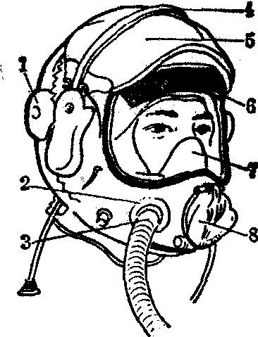 图5 加压头盔的类型 1.全加压头盔(与密闭服配套) 2.全加压头盔 (与部分加压服配套) 3.部分加压头盔