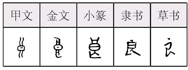 良 甲骨文; 金文; 篆liáng[獨體象形。(《説文》:“良,善也。從亯(xiǎng享)省,亡聲。”不確,善是良的假借義,所謂“從亯省,亡聲。”不過是篆文的訛變。良,甲骨文像古人穴居主室(口)兩側岀入之“過道”。“郎”本字,從邑,表示與居住有關,即主室兩側的走廊。借爲“善”〈善良〉;“甚”〈用心良苦〉。古代婦女對自己丈夫的愛稱〈良人〉;美好的時光,秀麗的風景〈良辰美景〉;德高望重,給人以幫助的老師和朋友〈良師益友〉;療效高但味苦的藥物〈良藥苦口〉。)] 《詩經·邶(bèi)風·日月》:“乃如之人兮!德音無良。”(天下竟有這種負心郎,如此缺德喪天良。) [春秋] 左丘明《左傳·定公四年》:“三折肱知爲良醫。”(斷了三次手臂的人就成了很好的醫生,久病成良醫。) 《孟子·離婁下》:“良人者,所仰望而終身也。”(丈夫,是值得尊敬而可以依靠過一輩子的啊。) [西漢] 司馬遷 《史記·夏本紀》:“元首明哉,股肱良哉,庶事康哉!”(元首英明智慧,大臣德才兼備,百業興旺發達。) [明] 施耐庵《水滸傳》(第七回):“林冲娘子紅了臉道:‘清平世界,是何道理,把良人調戲?’” 良liáng(7画)