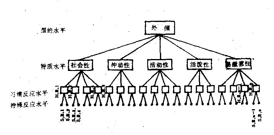 | 释义 | 艾森克人格理论 艾森克人格理论aisenke renge lilun英国心理家家艾森克从特质理论出发, 以传统心理学途径长期研究人格问题,并把研究兴趣从特质转向维度,从而确立了自己的人格结构模型。他用因素分析的方法研究人格特质, 指出人格结构四层理论, 如下图: