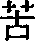苦kù;kǔ❶急。例:把人等~急咧,只等不来!做事急~~的。 ❷快意;幸好;好在。例:亏~他来得急,帮了大忙。 ❍ 好~有他在。 ❸止息。例:老歇~在家,寒~着这没事干。 ❍ 在家耨~着施寒干。 《广雅》:“苦,急也。”《方言》:“苦,快也。”郭璞注:“苦而为快者,训义之反复用之是也。”《尔雅》:“苦,急也。” 苦1. 辛勤劳动。俗语:“一年的庄稼两年的苦。”“保国的忠臣没下场,苦死的老牛刀尖亡。” 《大漠祭》(98):“憨头说他一年四季牛一样在屋里苦,快蹲成老死蛋子了,该出去活泛活泛了。” 《独弦操》(119):“两口子齐心合力好好苦上几年,日子也就活转过来了。”2. 忧伤;愁苦。《丁兰刻母》(贤孝):“这个曲儿苦者没式样,唱着叫凉州的观众们就听清干。” 苦kǔ超过一般的程度。〔例〕他与外国人打交道后,痛感到中国人指甲之长之脏,所以他自己每次剪指甲都全神贯注,剪得指甲短到狠、苦的程度。(收85.5.235)∣见了额大奶奶,胎里坏一路苦造谣言,甚么费了多少话啦,怎么又托了几个人啦,月底官司就可以完了吧,说了个天花乱坠。(额63) 苦〔ku〕 1.anb: 药很~。 nggabanbhent.2.kut:过去的~说不完。niusxib nangdkutjidchatjexdaotjul.3.kot:他干活不怕~。wudchudgouddongbjexnqeatkot. 苦胆〔kudan〕ghobjib. 苦工〔kugong〕kutgongd. 苦瓜〔kugua〕kutguad. 苦荞〔kuqiao〕ghobmenlanb. 苦竹〔kuzhu〕hlodanb. 苦ku31[k′u]❶穷苦。 ❷愁,愁苦为……发愁 ⊳我无乇~, 就是~伲囝书读好 (我不为任何事发愁,就是愁孩子书读不好)。 苦《广韵》康杜·姥;koǒ‖kǔ❶忧伤;愁苦:△~老无~穷,~囝精灵koǒ lâo bbó koǒgíng, koǒ gniǎ bbuê zīnglíng(囝:儿子。 :不会)。 《吕氏春秋·遇合》:“人有大臭者,其親戚兄弟妻妾知識,無能與居者,自苦而居海上。”宋·文天祥《读杜诗》诗:“耳想杜鵑心事苦,眼看胡馬淚痕多。” ❷恨;怨嫌:睏去,~直紧天光kùn bbuê kì, koǒbbuêdít gǐntnīgg(睡不着,恨不得快点天亮)。 《古诗十九首·生年不满百》:“晝短苦夜長,何不秉燭游?”宋·秦观《和黄法曹忆建溪梅花》:“清淚斑斑知有恨,恨春相逢苦不早。” 苦kǔ <绥德> ❶指劳动能力: 那后生好~|他从小城里长大,没劳动,满(全)没~,刚锄了一时时地就熬得不行了。 ❷指劳动时须负出的力量:扶犁~重,点籽~轻。 苦ㄎㄨˇkǔ三3141①名口。闽语。福建建瓯。清郝懿行《证俗文》卷十七:「今建州人谓口为~。」②名活儿;工作。晋语。陕西北部:喂牛,~不重,就是熬人,夜里得起来好几趟。③动赚(钱),挣(钱)。江淮官话。江苏盐城〖 〗。你~了多少钱?天天要吃好的。江苏淮阴〖 〗。④动惩罚性地责打。兰银官话。甘肃兰州〖 〗。⑤动虐待;折磨。闽语。广东揭阳〖 〗。伊个后母向慈,绝对𠀾~伊他的后母那么慈善,绝对不会虐待他。⑥动担心。闽语。福建宁德碗窑〖 〗。⑦动伤心。闽语。福建沙县〖 〗。⑧动愁;发愁。闽语。福建闽侯洋里〖 〗、福州。⑨动巴不得(后面紧跟否定式)。闽语。福建仙游〖 〗。~你𫧃吃。⑩形过头;过分。⑴北京官话。北京〖 〗。衣裳穿得太~了,早就该换件新的‖背心穿~了洗不出来‖可把他给骂~了。⑵晋语。山西忻州〖 〗。这件子袄儿穿~唡。⑪形除掉过多;损耗太多。⑴东北官话。东北〖 〗。指甲剪得太~了。⑵北京官话。北京〖 〗。这双鞋穿得太~了,不能修理了。⑫形穷;贫困。⑴徽语。安徽绩溪〖 〗。佢家家子老早好~他家里以前很穷。⑵吴语。上海〖 〗。屋里蛮~‖~人家。⑬形烦恼。闽语。福建福州〖 〗。⑭形快。⑴北京官话。北京。清光绪十年《畿辅通志》:「~,快也。」◈ 《方言》第三:「苦,快也。…宋、郑、周、洛、韩、魏之间曰~。」⑵湘语。湖南长沙。《湖南通志》:「快,楚曰~。」⑮形炽;盛。古方言。《方言》第十二:「苦,炽也。」清钱绎笺疏:「《说文》:『炽,盛也。』」⑯形相当于「厉害」(作补语,表示程度深)。中原官话。陕西延安。欧阳山《高干大》:「好像十分生气,而且气得很~的样子。」成荫《打得好》:「可把咱们村糟害~了。」   苦❶〈隐〉清末以来零剪业指数目五。参“企、洒、西、生、苦、意、哈、即、绣、球”。 ❷〈隐〉旧时编席业指数目四。参“气、西、沙、苦、球、屋、色、分、旭、架”。 ❸〈隐〉旧时洪门及今港、澳、台黑社会指偷窃。 苦kǔ❶形容味道像苦瓜或黄连那样 △ 药很~。 ❷劳累;艰辛 △ 劳~|~工。 ❸竭力;耐心地 △ ~思|~~相劝。 ❹难过;痛苦 △ 愁眉~脸|~恼。 ❺使痛苦;使难受 △ 这一年困难多,~了大家。 ❻姓。 苦kǔ