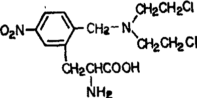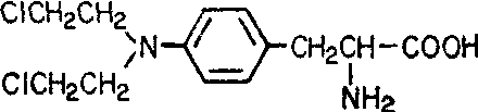 抗瘤氨酸(合14,isomerphalan) 本药分子中β-氨基取代溶肉瘤素的α-氨基,为白色粉末,m.p.188,192℃(分解)难溶于水及醇,溶于稀酸。对慢性粒细胞白血病和精原细胞瘤的疗效较好。口服每日25 mg,总量400~1000mg为一疗程。