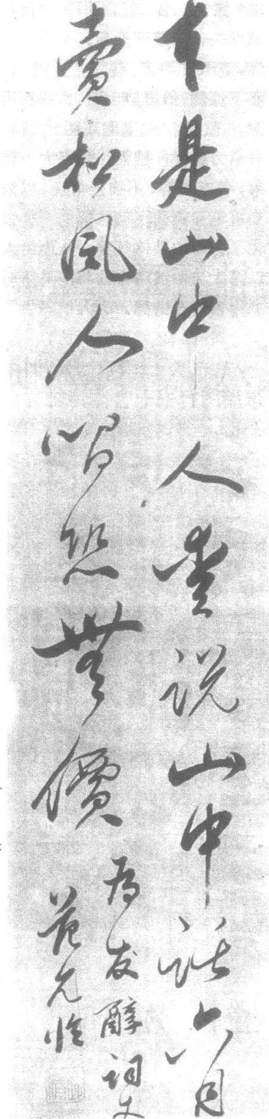 | 释义 | 范允临行书五言诗轴 范允临行书五言诗轴明。纸本。纵131.1厘米,横25.8厘米。江苏省苏州博物馆藏。范允临(明嘉靖三十七年—明崇祯十四年,即公元1558—1641年),字长倩,江苏吴县人。万历进士,授工部主事,官至福建参议。还乡后筑室天平山南麓,依山为榭,曲池修廊,即今之高义园。凡他的旧友和四方知交来苏,他都要陪同遨游于山水间。工书画,与董其昌齐名。《苏州志》云:“长倩工书,远近购者,虽寸缣尺幅,悉藏之以为拱璧,与华亭董其昌齐名。”此五言诗:“本是山中人,爱说山中话,六月卖松风,人间恐无价。”款署:“为发醇词丈,范允临。”行书字形以纵取势,有舒展飘然欲仙之韵和儒雅柔和的书卷气。